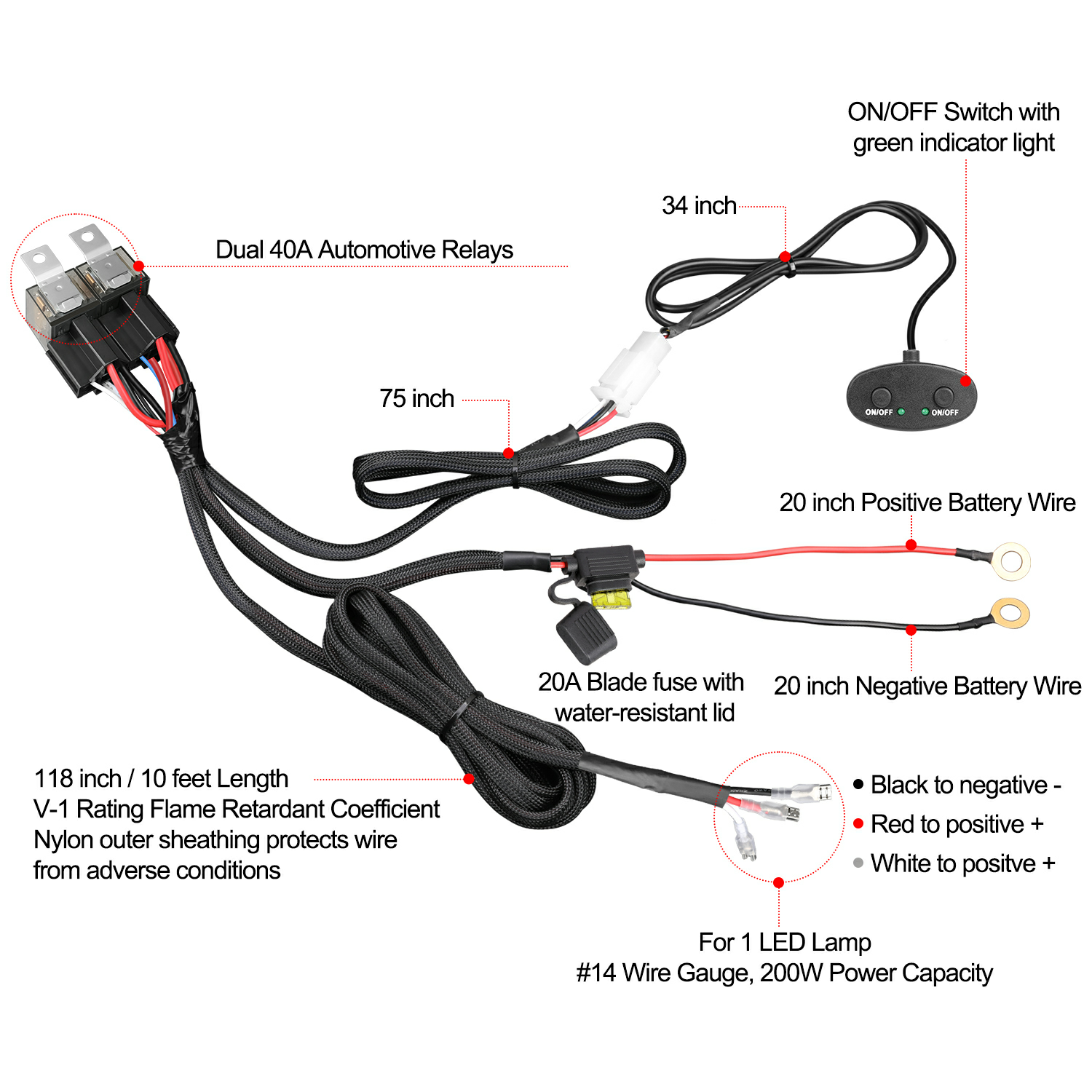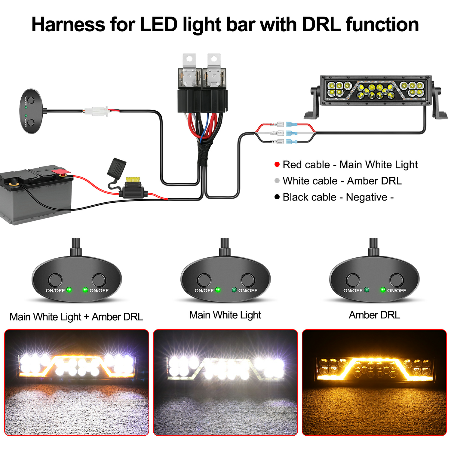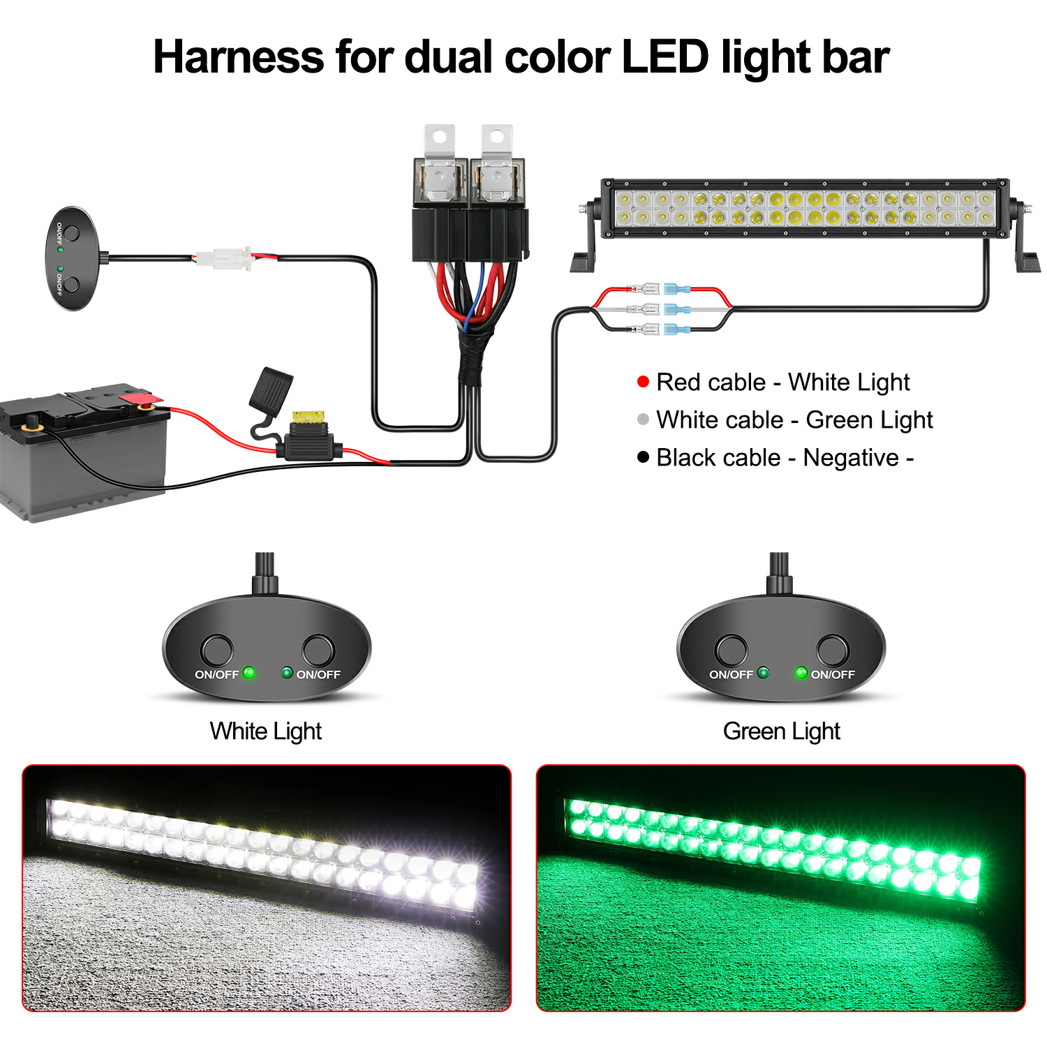 LED Light Bar Wiring Harness with with Dual Switches