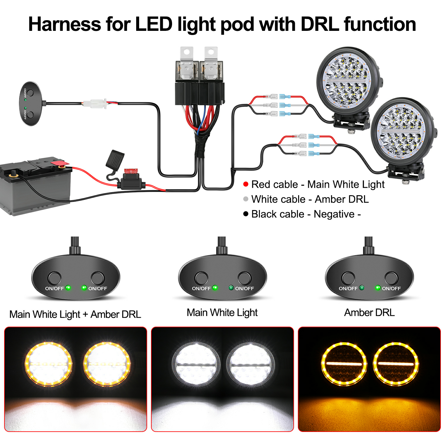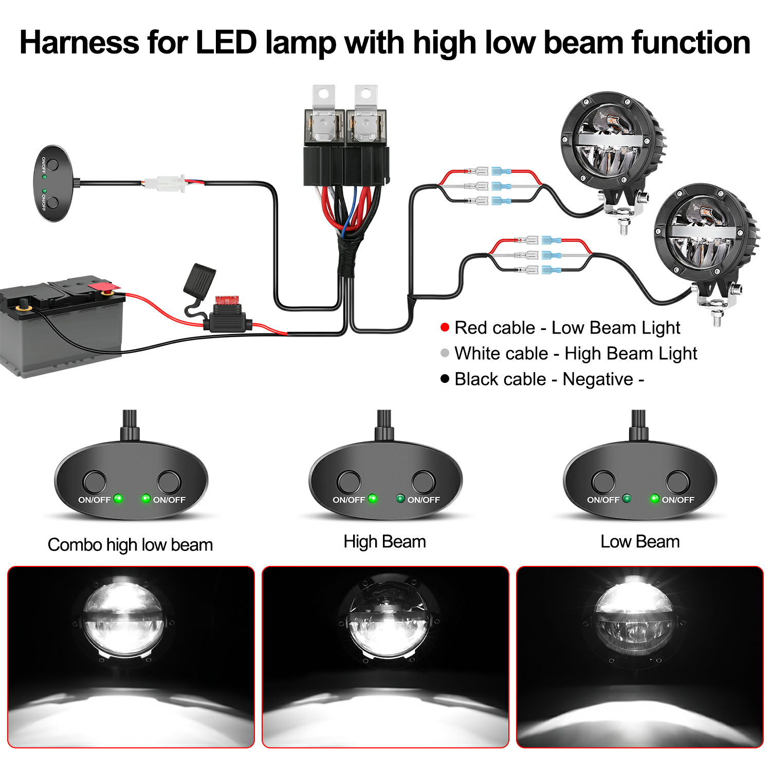 LED Light Bar Wiring Harness with with Dual Switches